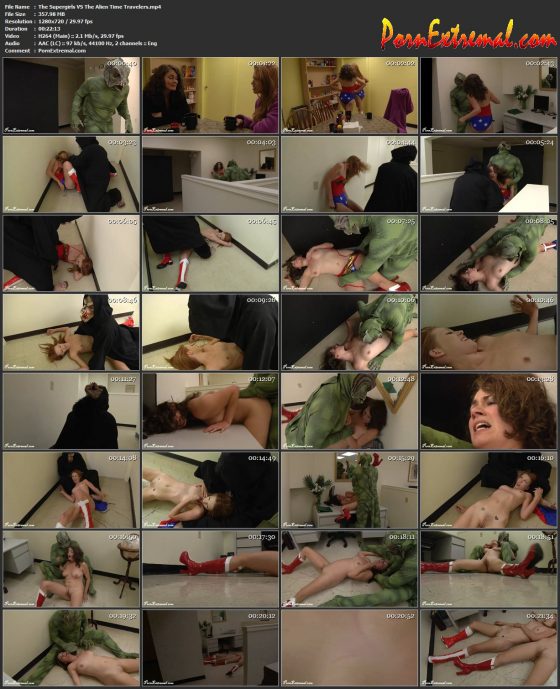 Description: When these two time traveling trouble making aliens show up the city calls the Superbabes to stop them. These two super hot super heroines are no stranger to evil doers or danger. The aliens have transported to an office building in the heart of the city. The Superbabes located them using their Supervillian/alien trouble maker radar located at LOG, the “League Of Good” headquarters. Once they arrive at the location where the two aliens are they start to show these two trouble making Aliens who’s boss. Then just as they think they have the situation under control the Aliens take charge and start beating the shit out of our super heroines. Once they are overpowered the aliens decide to kill them both and get the hell out of there. Looks like these two super hot super heroines have meet their match. Great action, Starli and Pepper are smoking hot in these video.