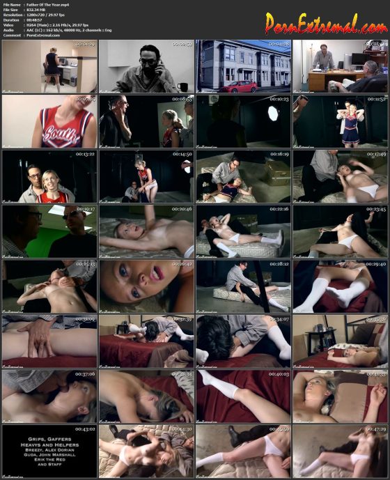 He spent his life, doing everything he could to raise her right and whats he got to show for it. A dead-end loan job and a crappy cup of coffee. His daughter comes bouncing in, dresses up cute as a button in her South High cheerleaders uniform. She is all cute and sweet and shows hims some new moves before heading home and all he can thing of is—that ass and how he wants to touch her there and everywhere. Bed thoughts go away! But, opportunity knocks when he is at his weakest and he is bringing his young daughter to a sleazy buddies indie movie company to audition for a part. Thing is, dad gets to be the actor and the buddy owes him a favor. So, as the scene progresses and daughter does her best to do well and keep a smile on her face, he gets to be a little groppy with his hands. In time, the sleazy director has her top off, but when dad fondles those great young tits, she reveals her lack of comfort with it. After he has a private conversation with his buddy, a new plan is hatch–one that will make this his daughter last role and net him tons of cash the the opportunity to do everything he has wanted. When the scene starts for the last time, he really strangles her. And boy, she puts up a good fight.