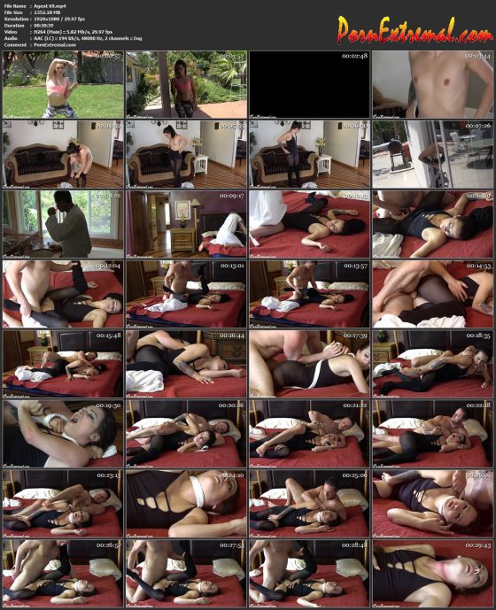 An Agent is practicing yoga and knife techniques in her back yard. Suddenly her phone rings, it’s her boss. He chose her for a special assignment, because she has superior knife skills and the assignment will required a quiet, quick, clean execution. Her boss instructs her that she will receive all the information for the assignment on DVD which will self destruct after viewing it. She gets dresses for the job the way she always dose, her tight black uniform with matching ski mask. She quietly breaks into the house by sneaking past the guards. The man she is targeting is brushing his teeth, but heard an unfamiliar noise. He gets his gun from drawer and sets out to find what the noise was. As his waking out of his room the Agent is walking into his room to do the job and get out, but they both meet at same time. The target has his gun pointed to Agents head and the Agent grabs the targets dick with her knife. Both realized their screwed, so they call for truths. The Agent and the target both throw there weapons on to the bed. The target is not focused and distracted by the Agents body. The Agent uses the situation to her advantage and head butts and knees the target in his balls. She charges for her knife, but the target trips her. Just as she touches her knife he was on top of her. He hit the Agent a several times until she dropped her knife and fell unconscious. The target lifted her ski mask and reveals a beautiful woman. He takes advantage of the situation while she is still unconscious. He rips off her nylons and penetrates her pussy. The target fucks her in two positions until she wakes up and start fighting trying to defended herself. The target grabs his rope belt, puts it around her neck and starts strangling her. The Agent puts up fight until she couldn’t fight any more and submits to her death. Her body is still warm and twitches. The target didn’t finished pleasuring himself, so he fucked her dead body until he climaxes on her stomach. Pissed of that she was able to get past his guards, he call them to clean up the mess