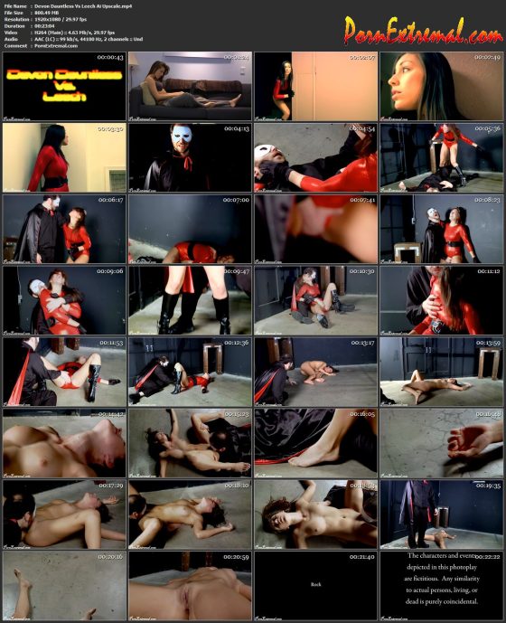 The superpowered power sucker Leech is back, and this time he is making good his promise to Rebecca Rush that he will take down her good friend Devon Dauntless, a heroine with super strength. Devon, seeking revenge for what this monster did to her good friend, is on the hunt and has finally tracked him down. With Rebecca Rush’s speed, he easily dodges the blows Devon throws at him, and uses his absorption powers to slowly suck the strength from her. Leech gets her down and starts licking her pussy sucking all of her powers from her till she is too weak to resist. Leech keeps draining Devon of her power until he absorbs her soul and life force, leaving her dead