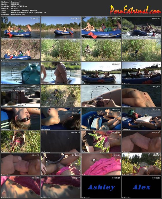 A groupe of friends have gone rafting for the day. To bad for them there is a Sniper in the area who is out for a killing spree. First, with a head shot to the only guy on the raft. Whit out him the girls are helpless. One by one Sniper takes out each of the girls. One lives long enough from her belly wond to be shot in the head. The raft flotes down river & comes ashore right were a Necrophilic is hanging out. He grabs him self a black one. A trip to the bushes is just the place for a Necro party. Necro by, Necro Pussy action, a blown wad & the local lucky Necrophilic is satisfied. Lucky huh? Not so much, Sniper shows up just as Mr Necro is bouncing. Make that 6 new notches for the Sniper’s stock. & maybe a few ears